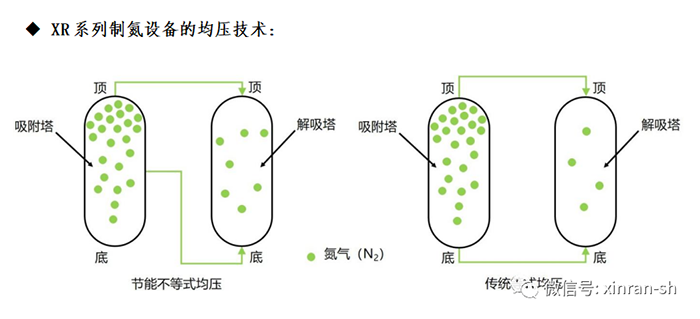 核心部件是碳分子筛,这东西有点意思。它对氮气和氧气有"选择性",氧气分子小,碳分子筛不要;氮气分子大,反而能被留住。设备里有两个塔,一个在"吃"氮气的时候,另一个在"吐"出来,这样轮着来,就能连续不断地出氮气了。